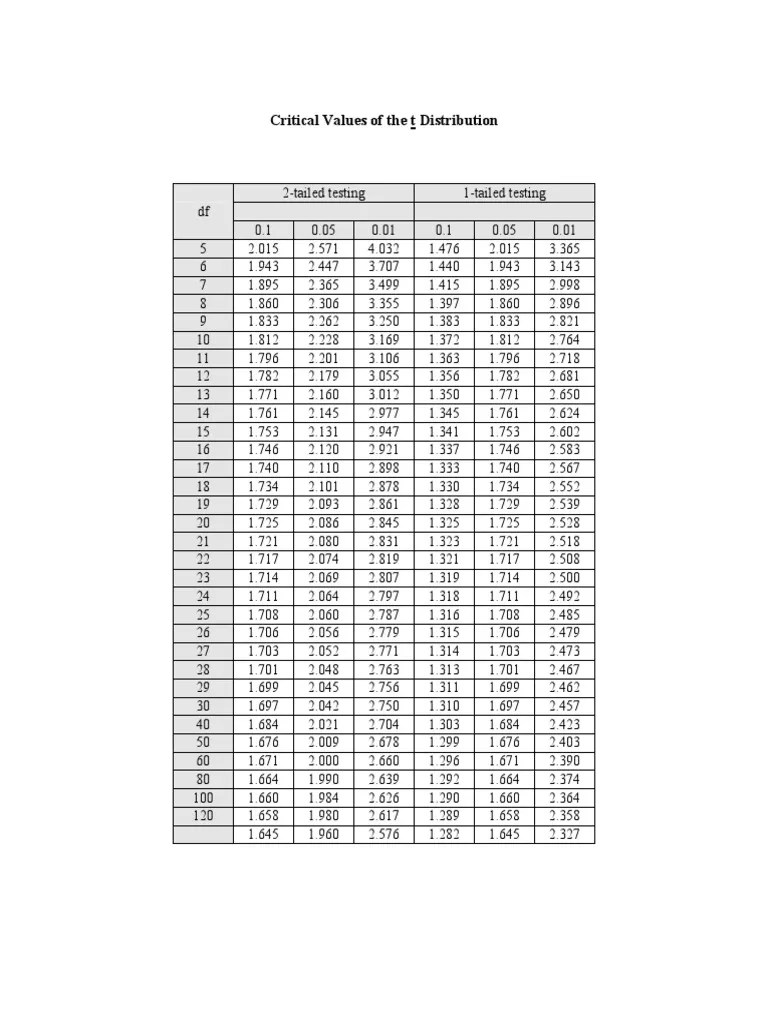 Hal ini dilakukan yakni dengan cara perbandingan antara statistik uji dengan statistik hitung. What is a t distribution table? Statistical tables 1 table a.1 cumulative standardized normal distribution a(z) is the integral of the standardized normal distribution from −∞to z (in other words, the area under the curve to the left of z). It gives the probability of a normal random variable not being more than z standard deviations above its mean. Jul 14, 2007 · t table cum.